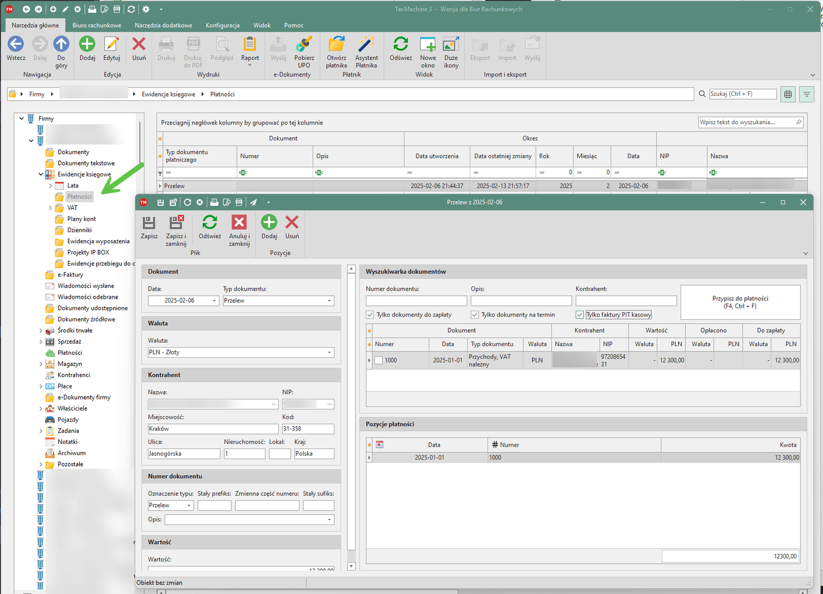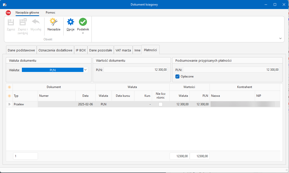 Płatności przypisane do księgowania są też widoczne w oknie księgowania: